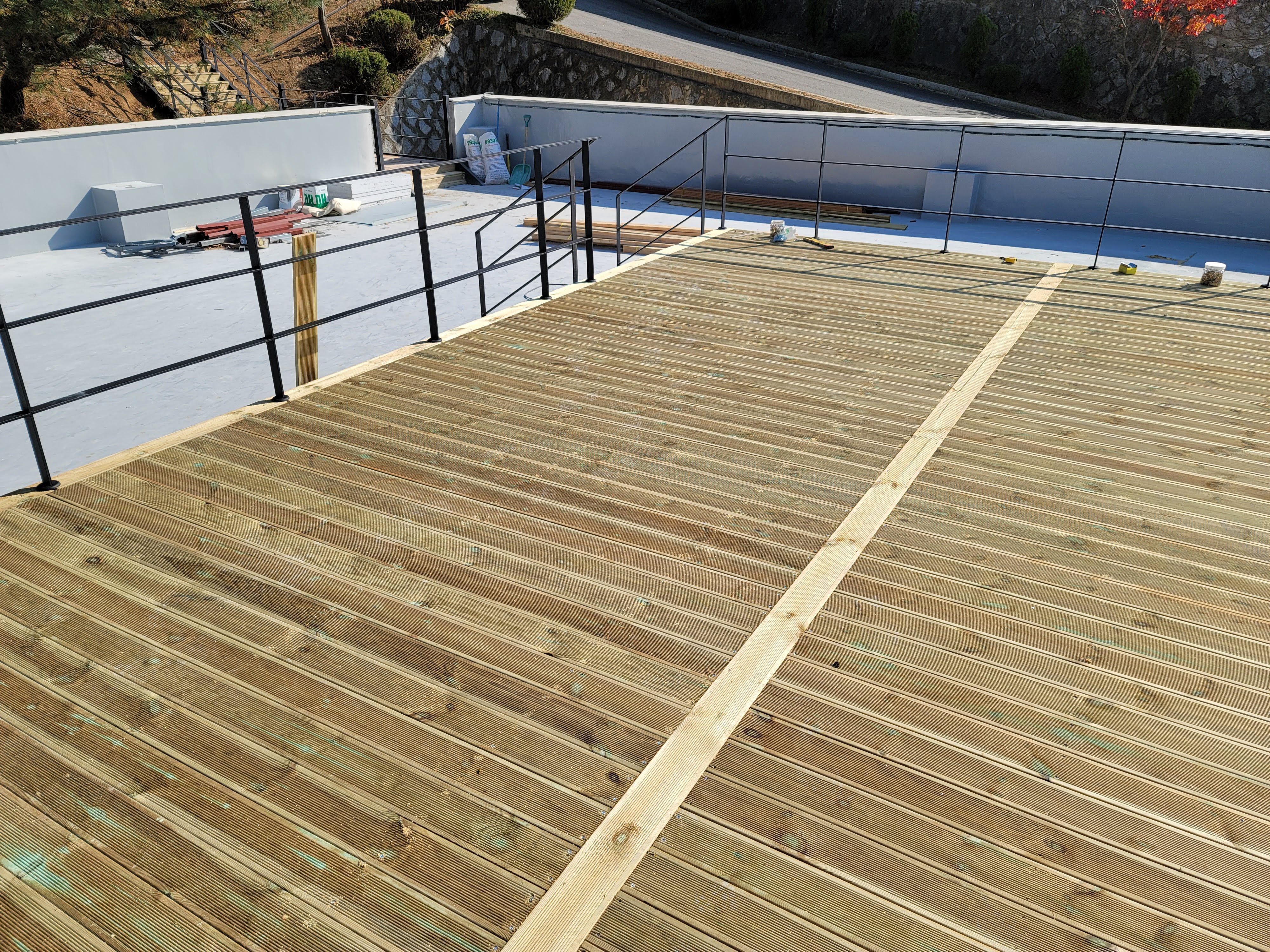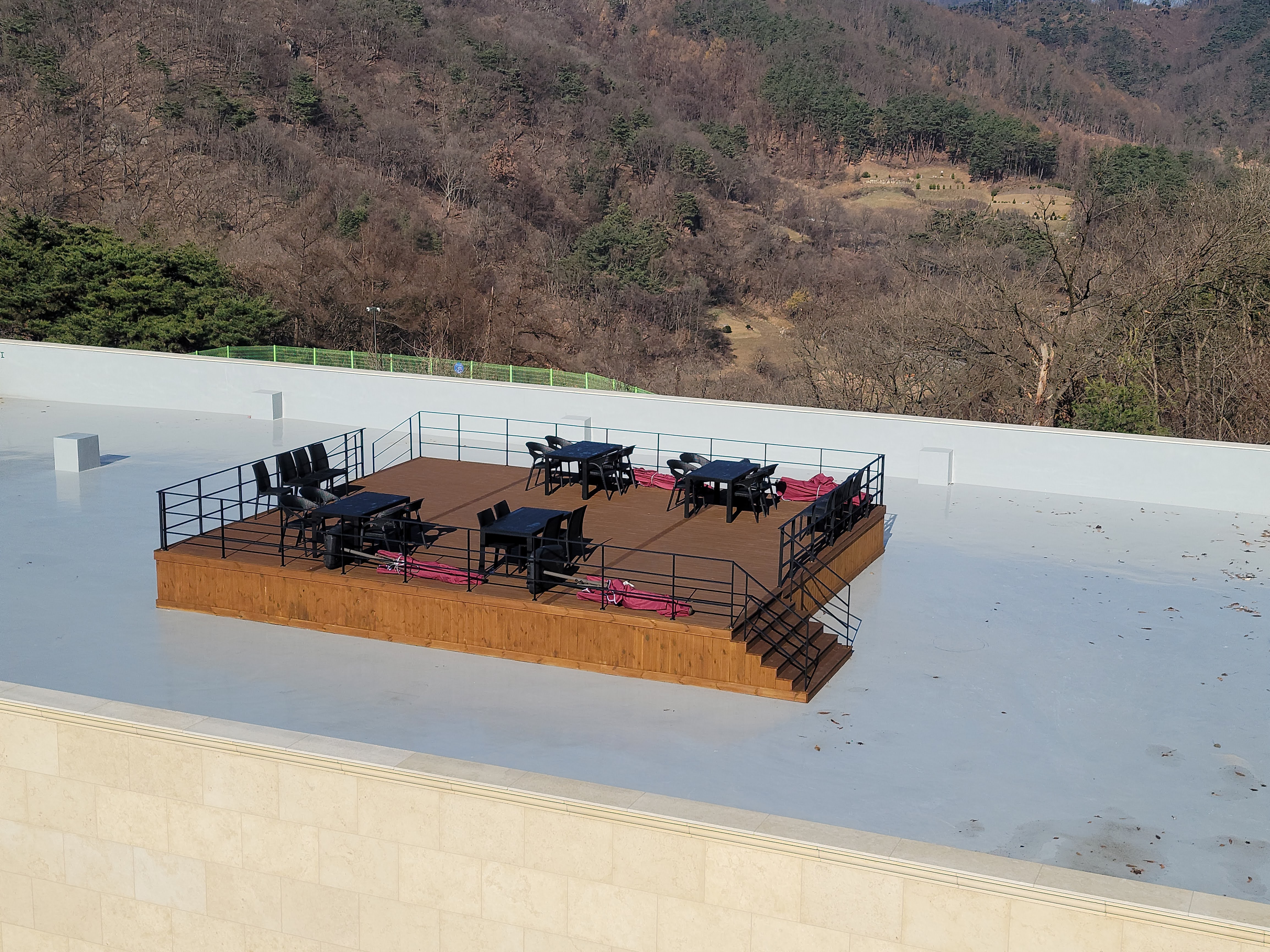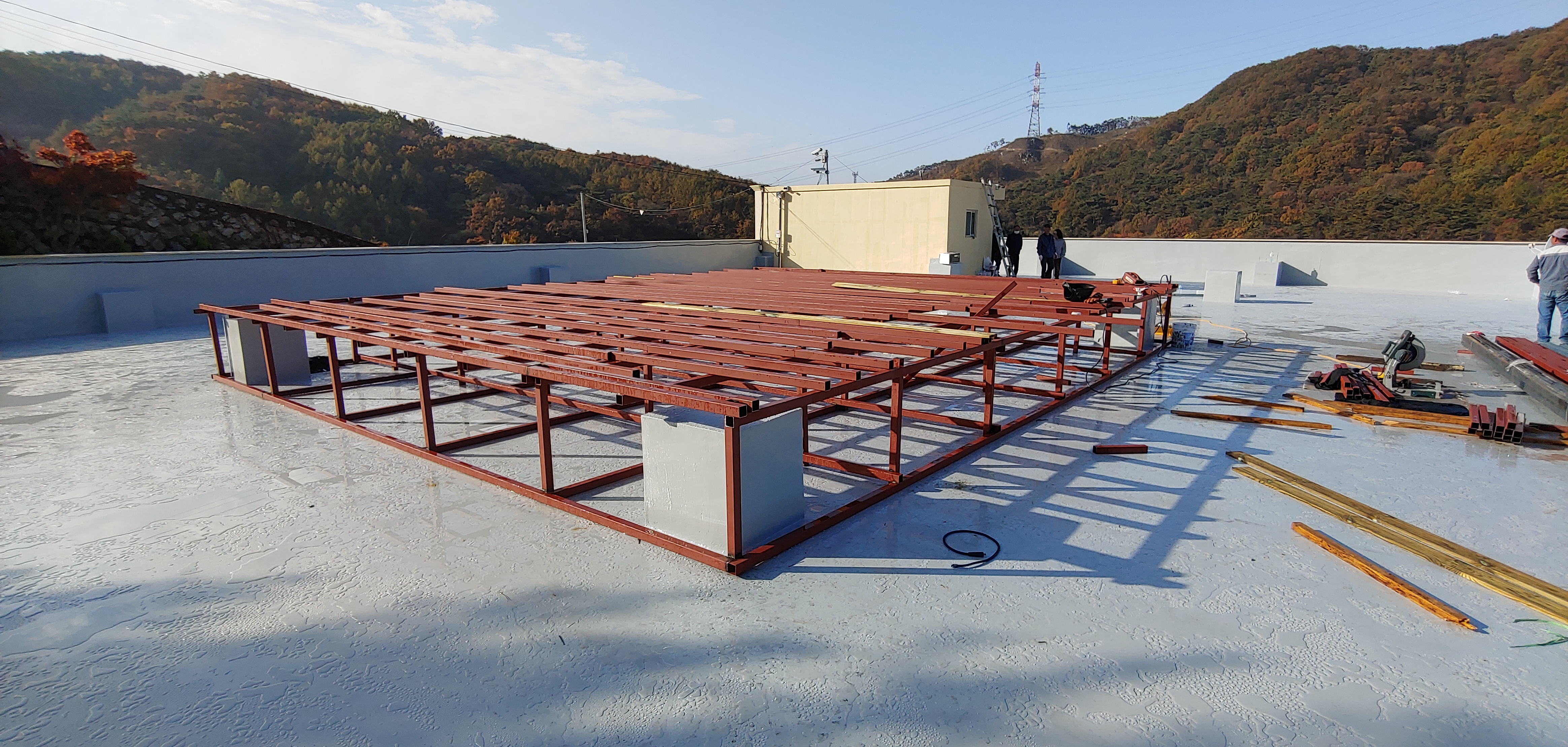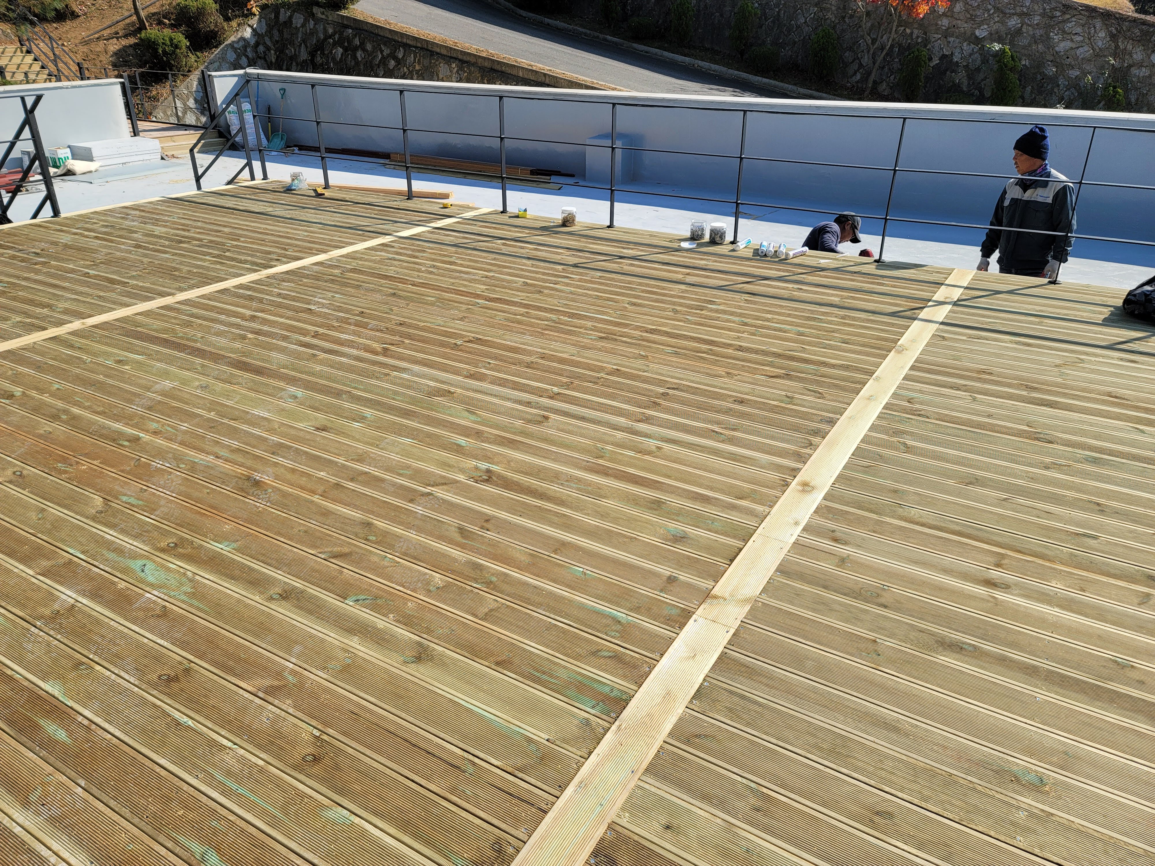 평면의 데크만 시공하는 팀은 시공이 어려운 현장