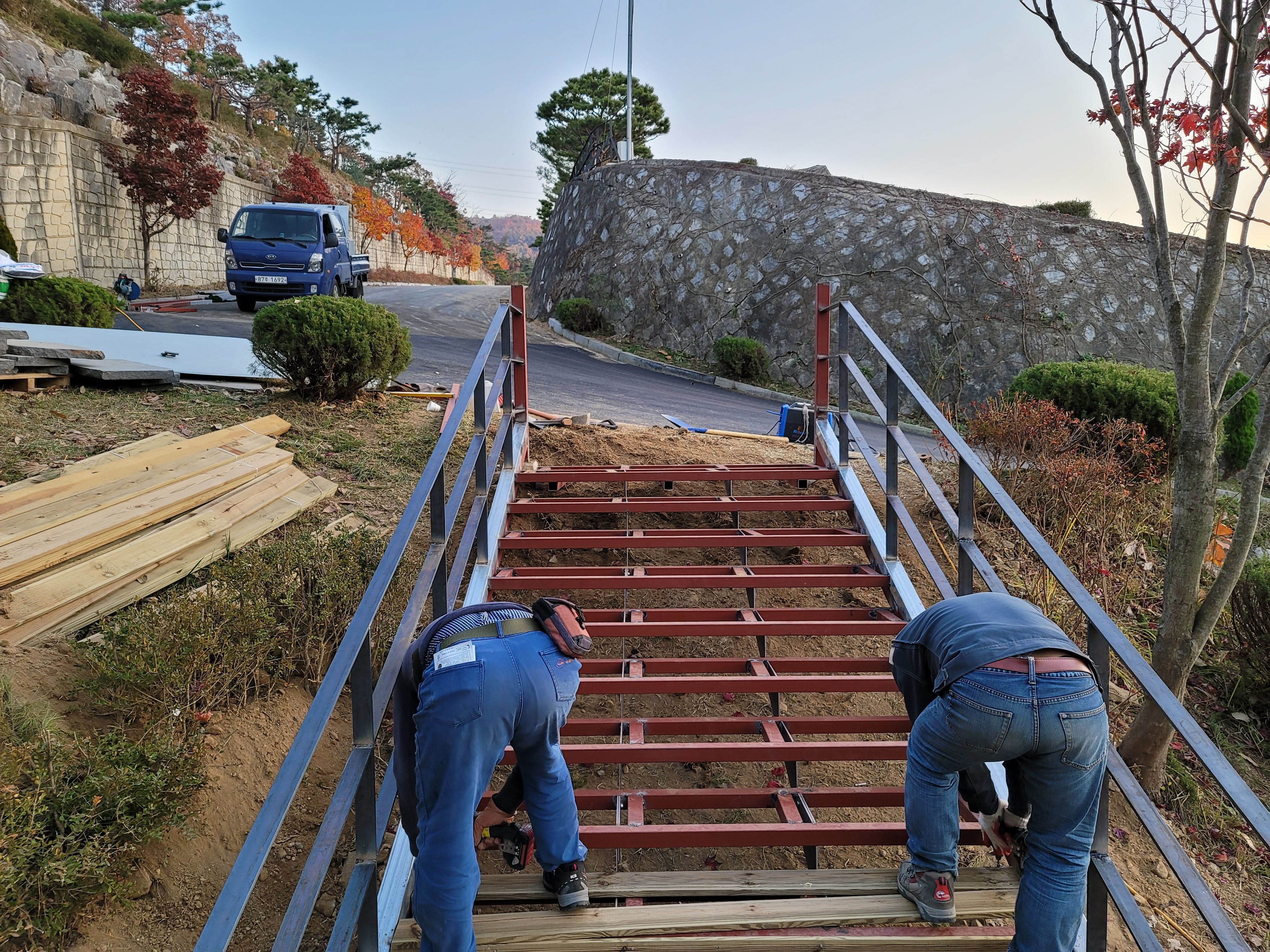 공원 데크완성, 복잡한 지형 복잡레이어 시공가능
