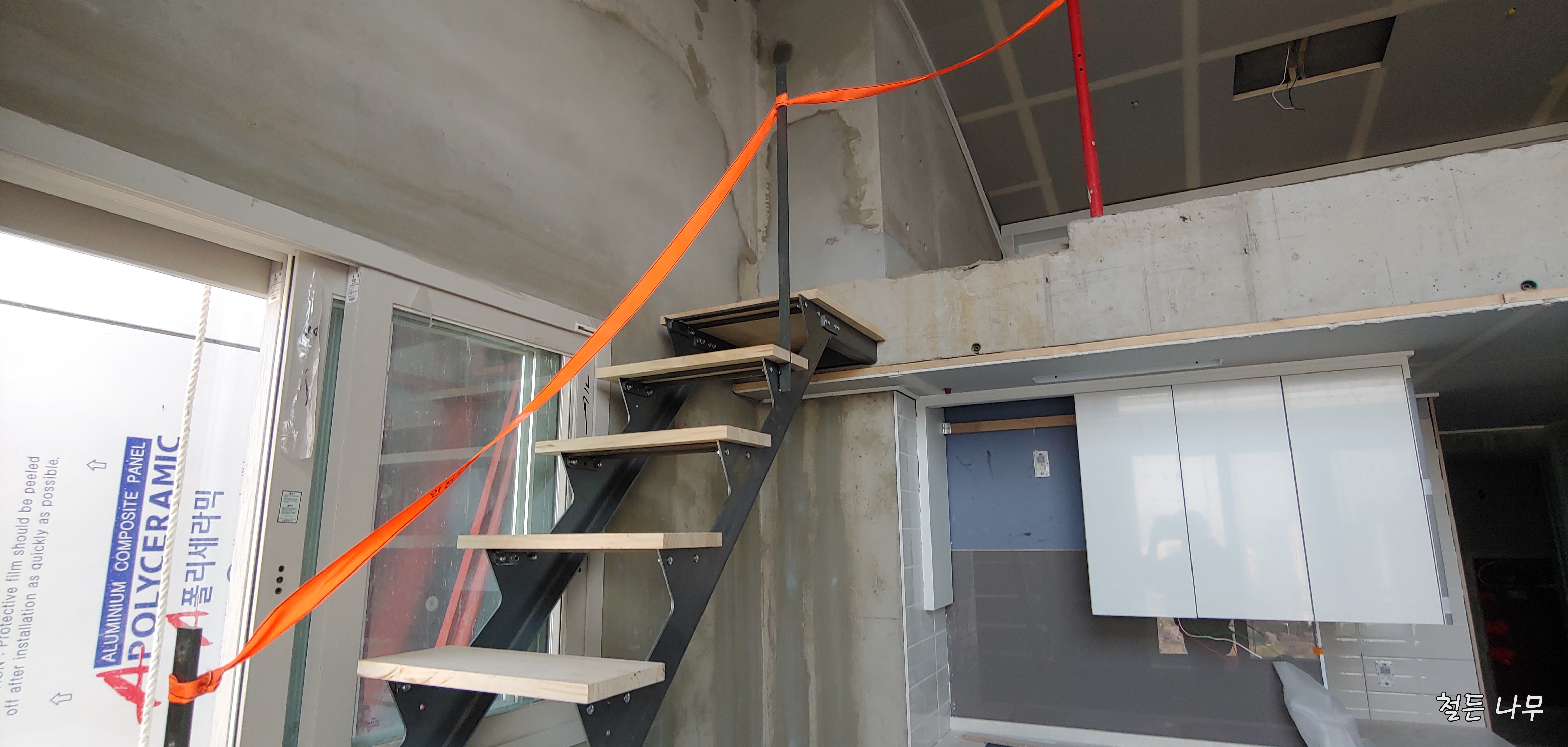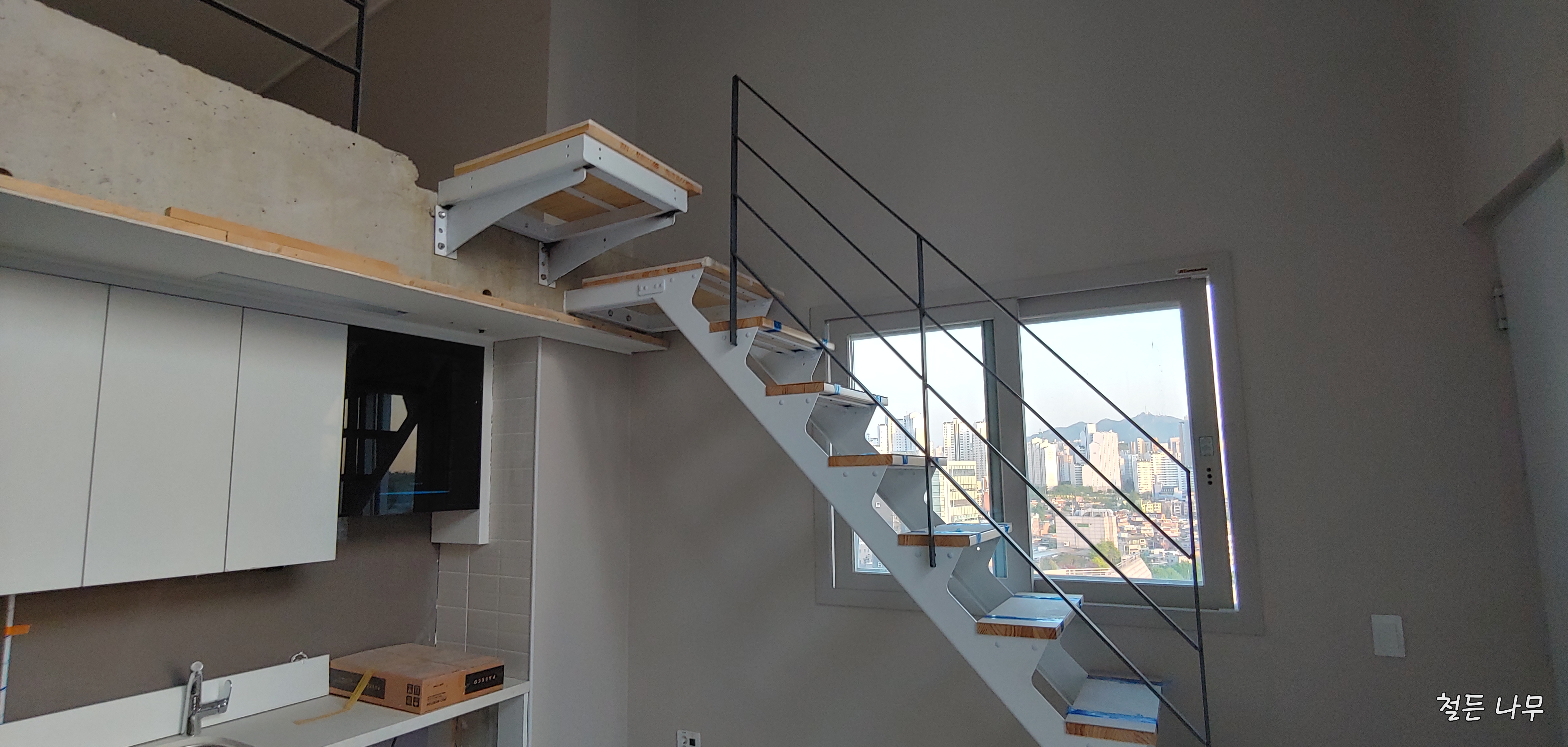 실내 복층에 오르내리기 위한 계단을 설치 했습니다.